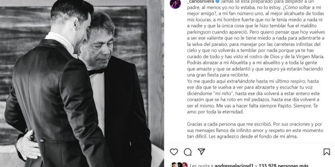 El cantante Carlos Rivera se pronunció este lunes con unas conmovedoras palabras en sus redes sociales tras la muerte de su padre y así lo despidió.