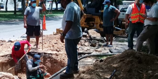 Mérida, Yucatán, 16 de julio de 2021.- En atención a un reporte ciudadano, la Junta de Agua Potable y Alcantarillado de Yucatán (Japay) se dio a la tarea de reparar rápidamente una fuga de gran tamaño en la avenida Itzáes, lo que permitió recuperar más de 860 mil litros de agua que a diario se perdían por esa avería.