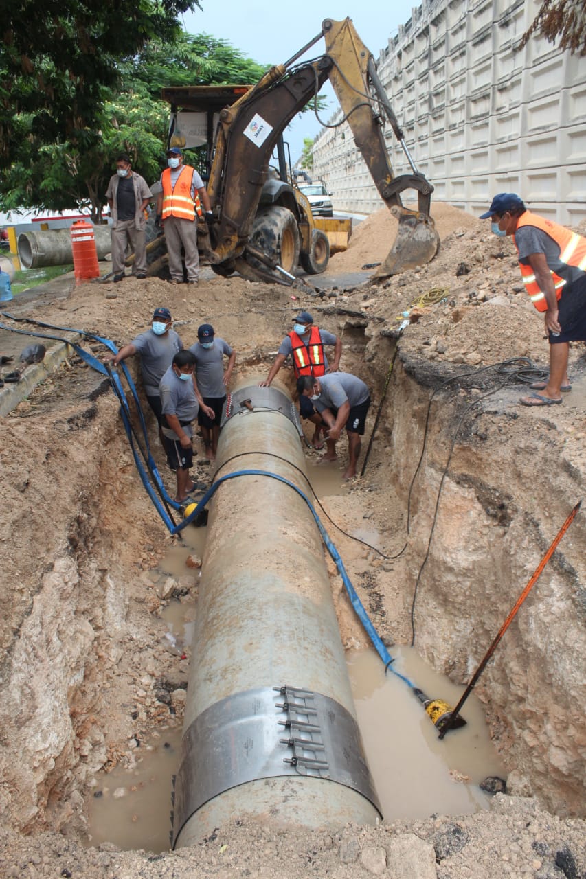 Mérida, Yucatán, 29 de junio de 2021.- En ardua jornada de 12 horas, la Junta de Agua Potable y Alcantarillado de Yucatán (Japay) reparó con éxito tres tramos del ducto principal de distribución que surge de la planta potabilizadora Mérida II, cumpliendo así las indicaciones del Gobernador Mauricio Vila Dosal, de recuperar caudales sin causar grandes afectaciones a los hogares.
