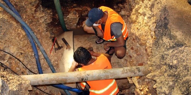 Mérida, Yucatán, 15 de agosto de 2020.- Durante 10 horas, personal de la Junta de Agua Potable y Alcantarillado de Yucatán (Japay) reparó la fuga en una línea principal de 36 pulgadas, proveniente de la Planta Mérida I, con lo que se evita el desperdicio de casi un millón de litros diarios, lo cual converge con la indicación del Gobernador Mauricio Vila Dosal de trabajar en la recuperación de caudales.