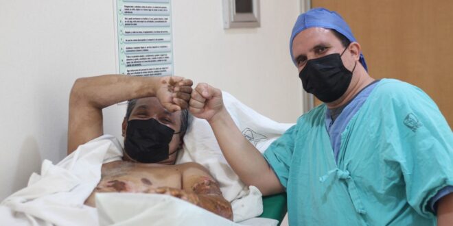 Señaló que las quemaduras que sufrió Javier se extendieron en varias partes de su cuerpo, incluso creyeron que podría perder extremidades, pero “gracias a una técnica de aseos quirúrgicos seriados bajo anestesia se logró que hubiera una integración del 99 por ciento de los injertos colocados”.