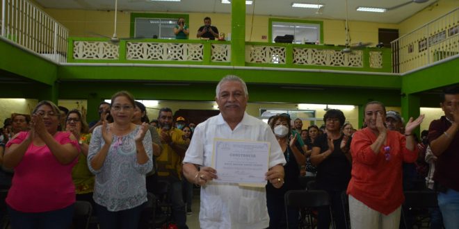Mérida, Yucatán, viernes 10 de febrero de 2023.- El líder de la Planilla Verde, Jervis García Vázquez, fue declarado electo secretario general del Sindicato de Trabajadores al Servicio del Poder Ejecutivo e Instituciones Descentralizadas de Yucatán (STSPEIDY) para el periodo comprendido del 1 de marzo del 2023 al 28 de febrero del 2026.
