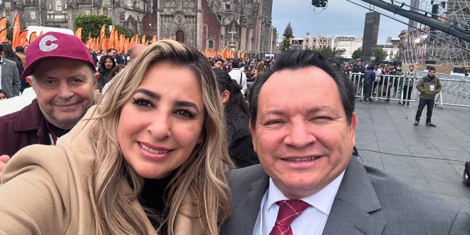 CDMX, Domingo, 12 de enero.- La Diputada Federal Jessica Saiden, asistió al informe de 100 días de Gobierno de la Presidenta Claudia Sheinbaum Pardo, que se llevó a cabo en la explanada del Zócalo capitalino, donde miles de personas se dieron cita esta mañana.