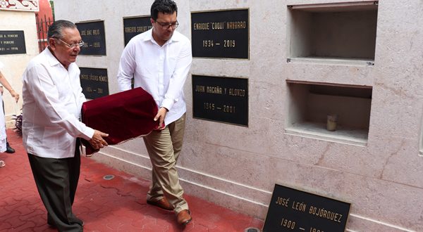 Acompañados por las descendientes del autor, Pérez Sabido y Andrade Castillo depositaron la urna en la tercera sección del mausoleo, que convierten a León Bojórquez en el creador número 47 en ocupar un lugar en el emblemático recinto.