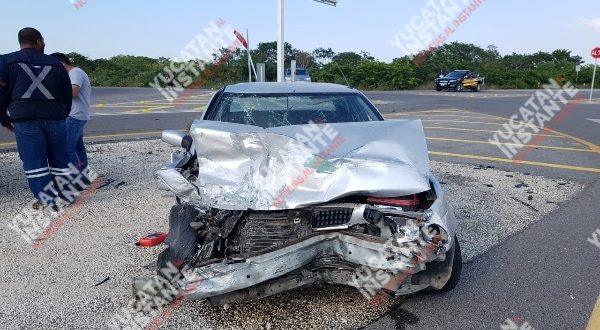 El percance se suscitó esta tarde cuando el guiador de la camioneta constructora de SUMA, no hizo su alto total, para causar que el automóvil que manejaba un kinchileño que está dializado, y venía de laborar de Mérida se estampara de un lateral.