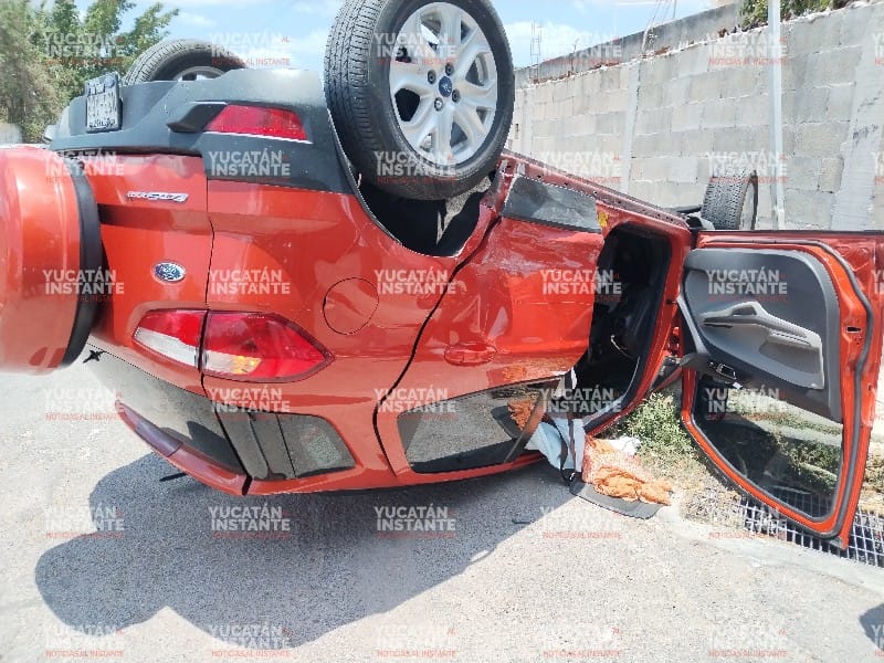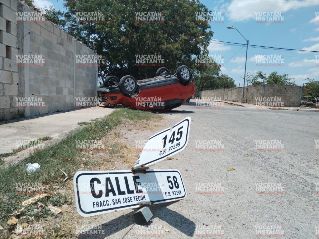 Joven conductora provoca volcadura en el sur de Mérida (Video)
