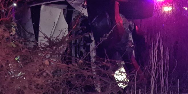 Mientras el joven chofer en su loca carrera hacia los matorrales se proyecto contra un tronco viejo que arrancó de raíz, que lo catapulto e hizo volcar de su costado derecho.