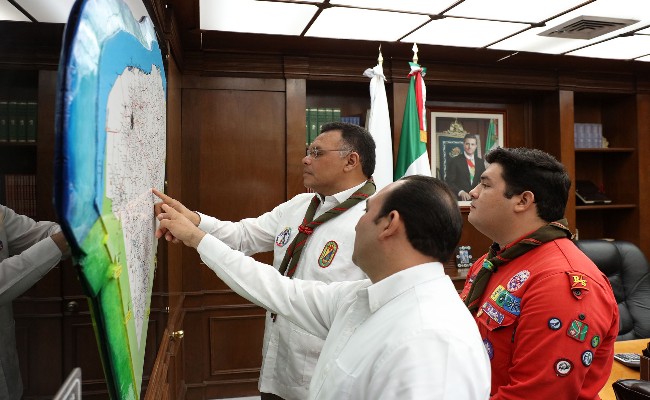 Acompañado del presidente de la Provincia Yucatán de la Asociación de Scouts de México, Raúl Alfonso Rebolledo Alcocer, Zapata Bello reconoció que esta agrupación ha contribuido activamente, mediante su visión de emprendedora y solidaria, así como sus bondades, en todo lo construido durante su administración.