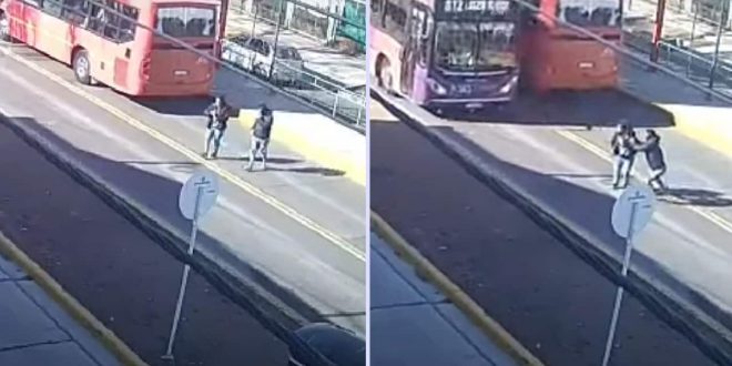 Aunque al cruzar por los carriles del ómnibus, ambos intentaron esquivar a los vehículos, uno de ellos logra alcanzarlos. Por fortuna el conductor pudo detenerse y evitar una tragedia.