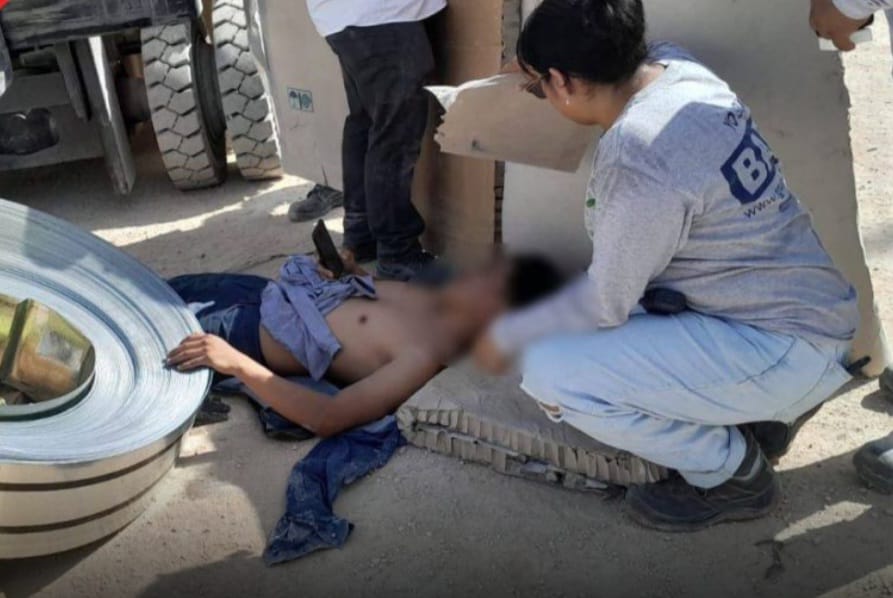 En el trayecto el joven notó que el rollo comenzaba a resbalarse del brazo del montacarga, en un intento de evitar la caída, trató de sostenerlo y terminó aplastando su pierna y provocándole fractura expuesta.