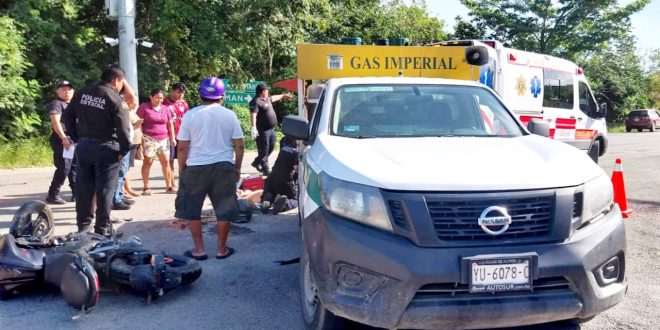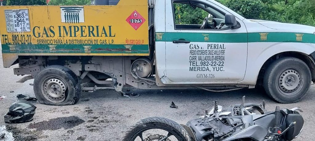SAMAHIL, Yuc., 17 de octubre 2023.- A. P. T., (a) “Tachi” de 17 años, volvió a ver la luz, pues cuando se dirigía a su escuela , debido a qué una camioneta gasera a la altura del entronque pretendió ingresar a la carretera de Bolón, provocando que impacte duro con la unidad repartidora de gas LP en la vía estatal Oxholón-Samahil.