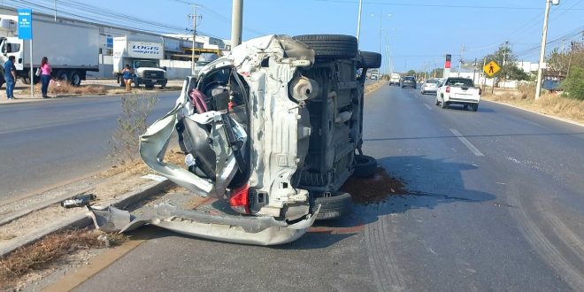 Umán, Yuc., a 25 de marzo.- Tremenda volcadura sobrellevó la conductora de un automóvil Swift color blanco esta mañana a la altura del kilómetro 12 del tramo Mérida-Umán.