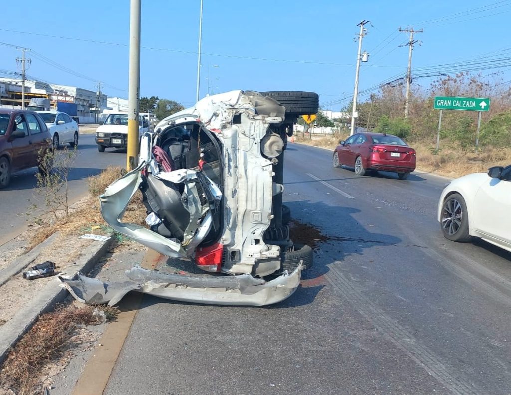 Al ver la pesada mole que le tapaba el paso, la conductora frenó de golpe, provocando así, que pierda el control del volante hasta subir al camellón central donde le sirvió de empuje, haciendo que el vehículo diera varias piruetas hasta quedar asentado sobre su costado izquierdo, sobre el carril de alta velocidad.
