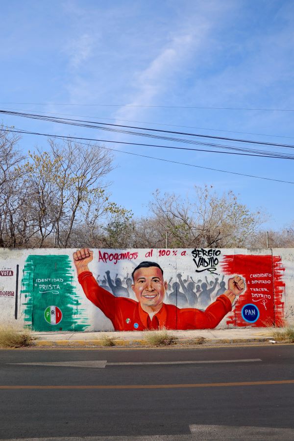 Por si fuera poco, hay un mural adicional en la colonia Juan Pablo II, donde muchachos de ese rumbo retrataron a su manera al candidato.