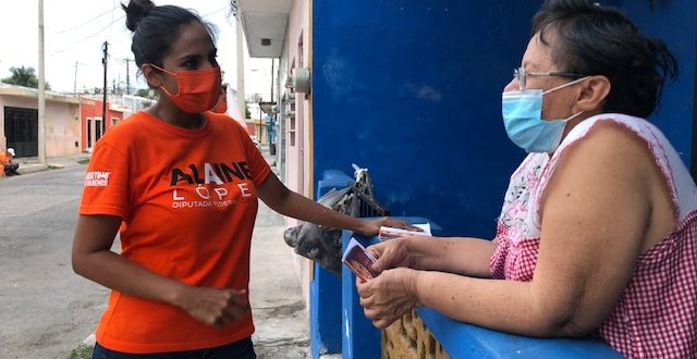 Mérida, Yucatán, 12 de mayo de 2021.- La candidata de Movimiento Ciudadano por el III Distrito Federal, Alaine López Briceño, señaló que impulsará la jubilación de las amas de casa, propuesta que abandera el partido naranja.