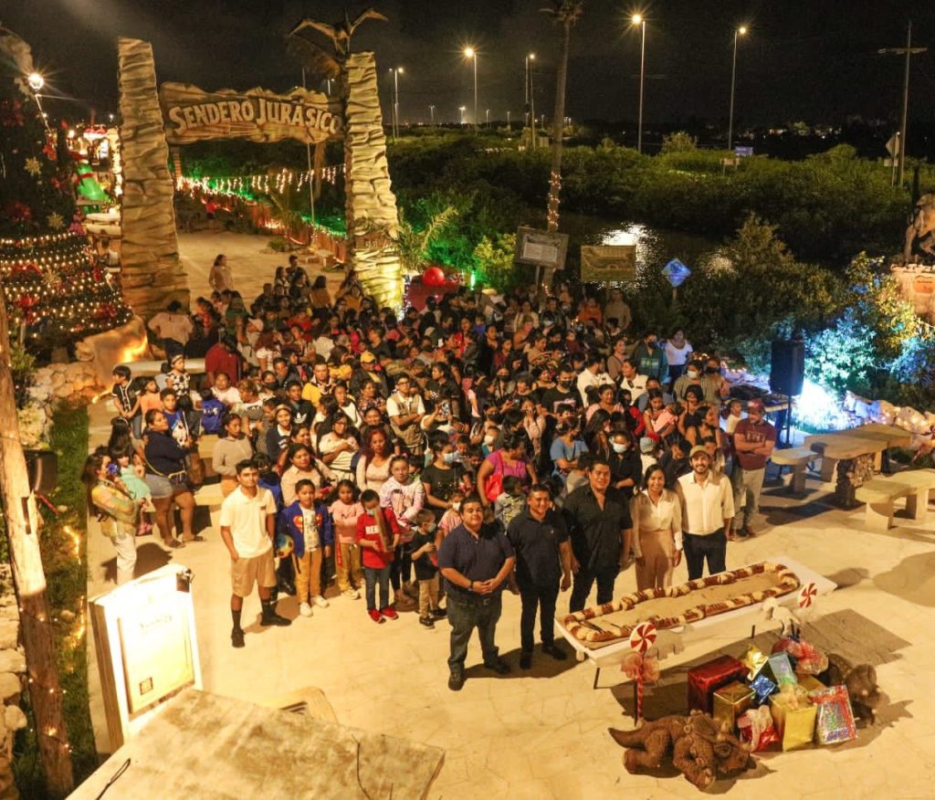 Ahí, el regidor Karim Dib López, de Servicios Públicos, quien asistió en representación del alcalde Julián Zacarías; el arquitecto y suplente del edil, Fued Zacarías Solís, así como la directora del parque temático, Cinthia Sosa Gómez, compartieron la “Dino Rosca de Reyes” con las familias, y la que se espera sea una tradición año con año.
