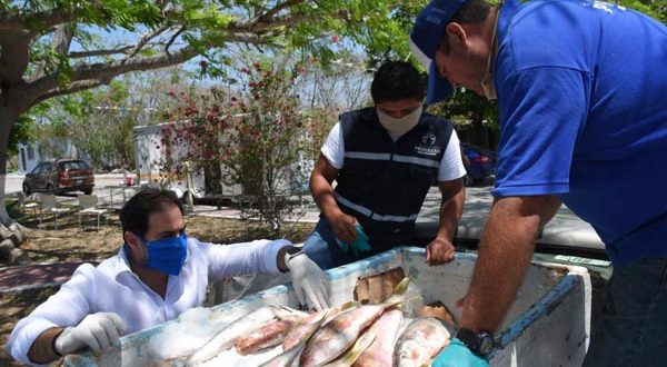 La entrega se hizo con el apoyo del personal de la Dirección de Pesca y Desarrollo Agropecuario, a cargo de Roger Gómez Ortegón, el cual ha trabajado con toda la disposición y orden, asimismo apegados a las medidas preventivas, para entregar el producto fresco casa por casa a quienes verdaderamente lo necesitan.