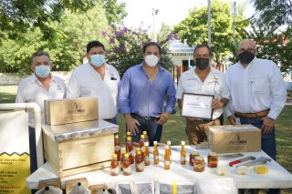 Durante el evento el Edil entrego reconocimiento a los productores de miel por su trabajo y calidad que le brindan a sus productos de Miel.
