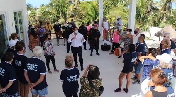 Como estrategia de prevención un grupo de 20 extranjeros, que residen en el puerto de Chuburná, participaron en el curso de defensa personal a fin de conocer técnicas contra ataques; autoridades municipal extienden la invitación a progreseños