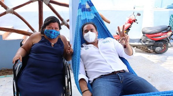 Después de intercambiar ideas, opiniones e incluso alimentos, doña Conchi no dejó pasar la oportunidad de repetir la foto que la hizo viral, esta vez con el candidato en persona; momento que fue capturado por la familia y que titularon en sus redes sociales con un “¡Súper feliz! Logramos que se suba a la hamaca”.