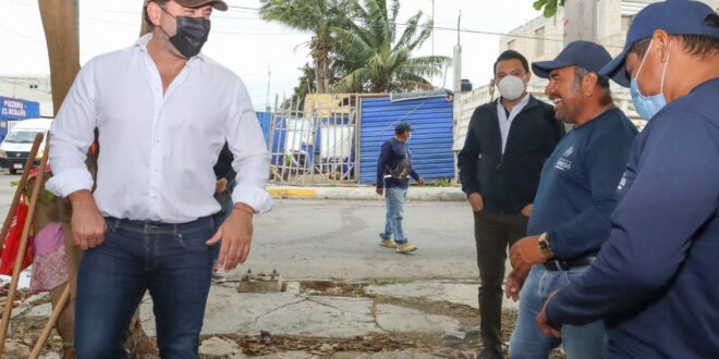 Progreso, Yucatán a 25 de marzo de 2022.- Pese a las inclemencias de clima, ayer por la mañana, el alcalde de Progreso, Julián Zacarías Curi, acudió a la calle 37 por 46 de la Colonia Revolución, para constatar las labores de saneamiento en un espacio natural tomado como basurero clandestino.