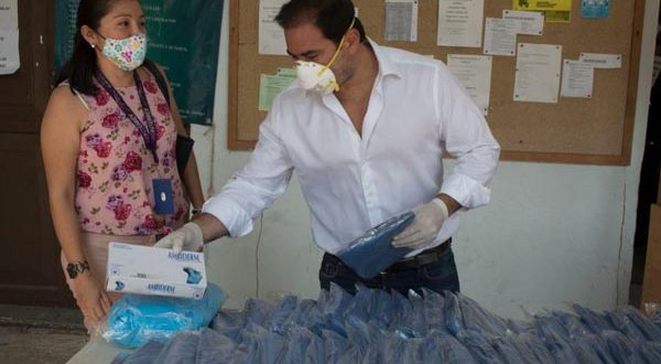 Progreso, Yucatán a 22 de abril de 2020. “Agradecemos que nos hayan prestado atención y nos hayan apoyado con insumos que, aunque recibimos, son insuficientes”, externó la administradora de la Unidad de Medicina Familiar del IMSS de Progreso, Adela Pisté Canché al alcalde Julián Zacarías Curi, luego de recibir este martes por la mañana insumos para la clínica que representa.
