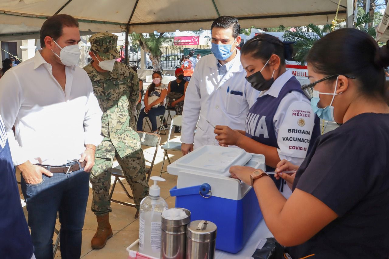 En ese sentido, acompañado por autoridades de la Marina e ISSSTE, asistió a la casa de la cultura, lugar donde se están aplicando las vacunas.