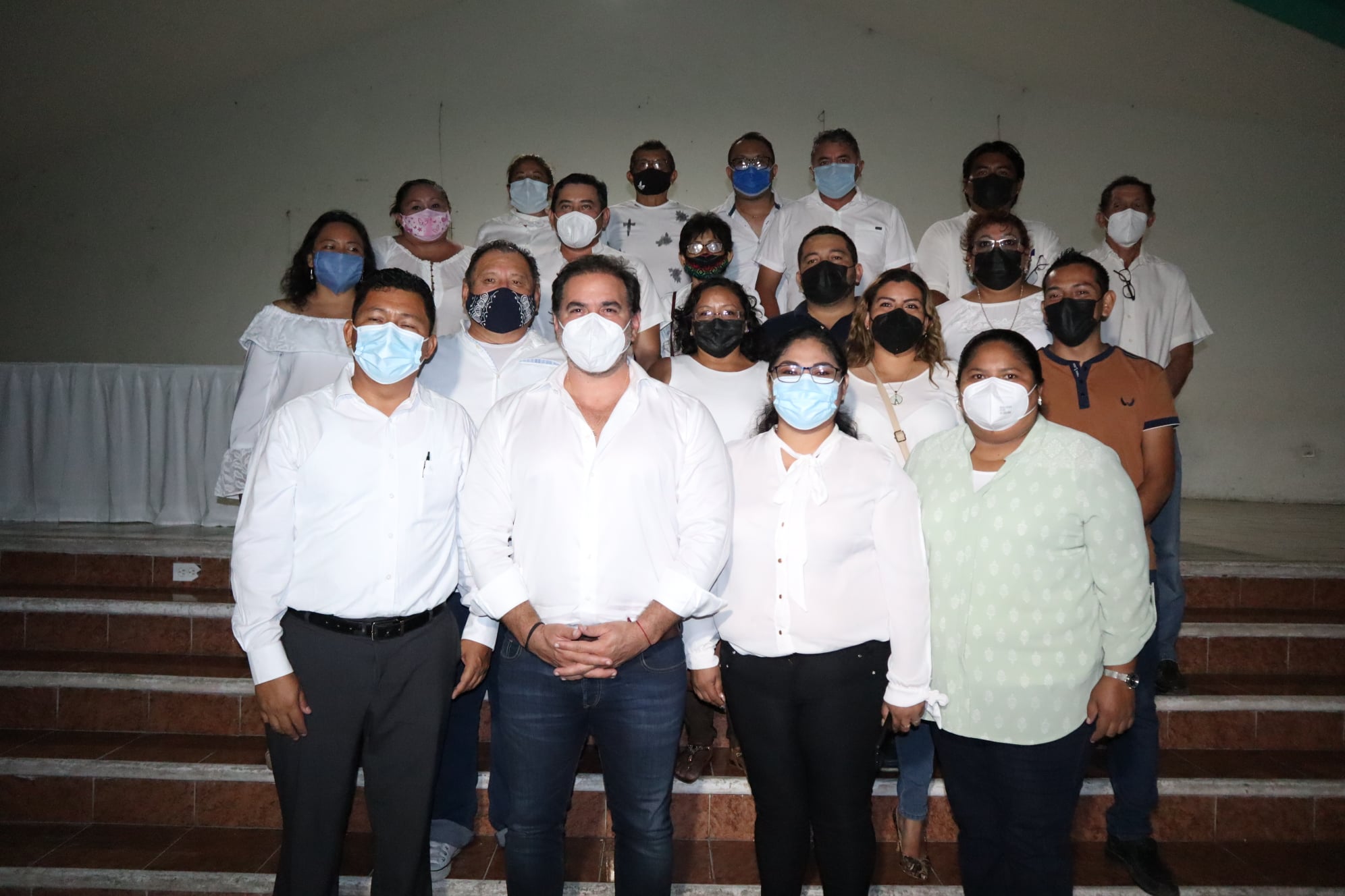 En el lugar, acompañó al alcalde el Secretario de la Comuna, José Alfredo Salazar Rojo, así como los líderes y representantes de los cuatro sindicatos de trabajadores del Ayuntamiento de Progreso; por parte de la Confederación de Trabajadores de México (CTM), el secretario Luis Renán Briceño Contreras en representación del dirigente estatal de dicha organización, Mario Transito Chan Chan.