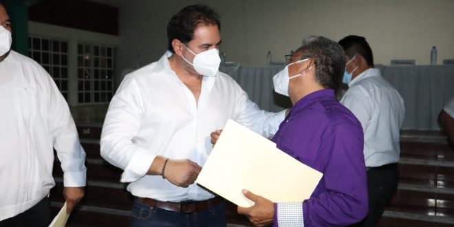 Progreso, Yucatán a 02 de abril de 2021. “Soy una persona que me gusta trabajar hombro con hombro, los veo poco, pero quiero que sepan que todo el día estoy trabajando para hacer lo mejor posible a favor de todas las familias de Progreso, y hoy es un día histórico; nunca antes una administración municipal en Progreso había otorgado estos beneficios que formarán parte de este contrato colectivo que les dará a ustedes y a sus familias una certeza jurídica que es justa y necesaria, y que reconoce totalmente su trabajo”, destacó el alcalde Julián Zacarías Curi durante la firma de dicho documento celebrada ayer por la tarde en el conocido local de la CTM.