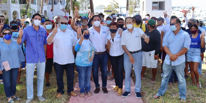Progreso, Yucatán a 06 de mayo de 2021.  Capitanes, marineros, mecánicos, electricistas y trabajadores de las marinas turísticas y  deportivas “Sureste” y “Silcer” dialogaron esta mañana con el candidato a la presidencia municipal de Progreso por el Partido Acción Nacional (PAN), Julián Zacarías Curi, quien agradeció la disposición de los dueños y trabajadores para escucharlo, y conocer más del trabajo que realizó durante su administración como alcalde y lo que propone ahora como aspirante a la reelección en su municipio.