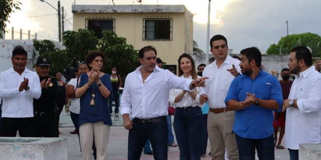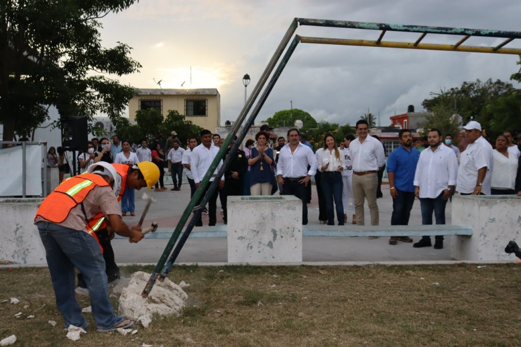 PROGRESO, 15 de octubre 2022. – El alcalde Julián Zacarías Curi encabezó el banderazo de inicio de obras en la comisaría de Flamboyanes, las cuales incluyen la remodelación del parque “Ignacio Zaragoza”, así como la creación de pozos de agua y la ampliación de red eléctrica en la colonia Ivey.