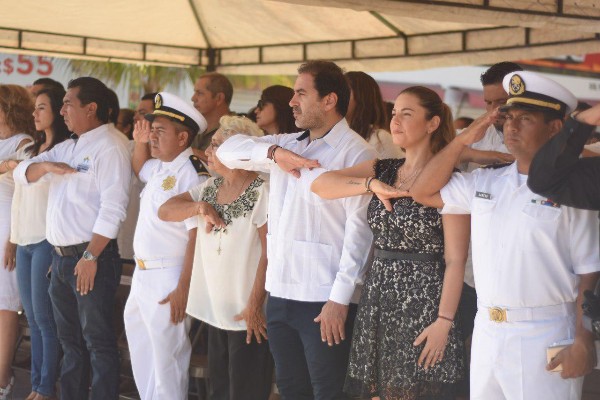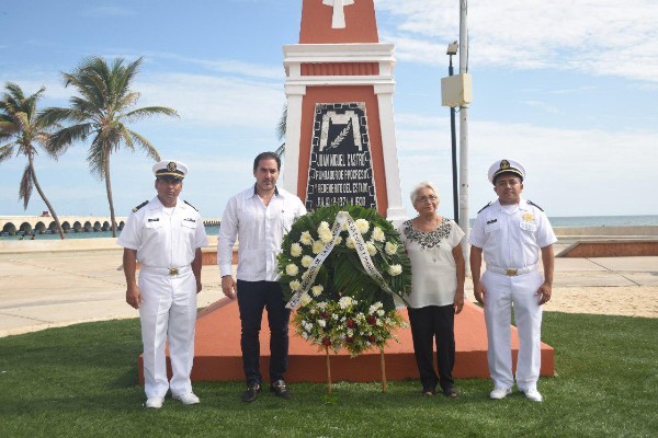 Posterior al mensaje, el edil, acompañado del Teniente de Fragata de la IX Zona Naval, Ignacio Santos Martínez, del Jefe de Resguardo Marítimo de la Capitanía de Puerto Regional, Jorge cruz Zapata así como de la recipiendaria Ciudadana Distinguida 2019, la maestra Nuby Sevilla Sánchez, colocaron arreglo floral frente al monumento.