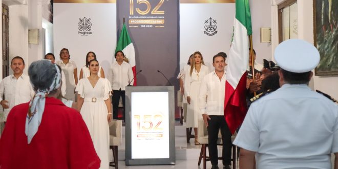 Progreso, Yucatán a 1 de julio de 2023. En un acto solemne y lleno de emotividad, el Alcalde Julián Zacarías Curi encabezó la Sesión Solemne de Cabildo para conmemorar el aniversario número 152 de la fundación de Progreso. El evento, celebrado en la sala Juárez del Palacio Municipal, reunió a un gran número de funcionarios e invitados especiales, quienes rindieron homenaje a la historia y el desarrollo de este importante puerto yucateco.
