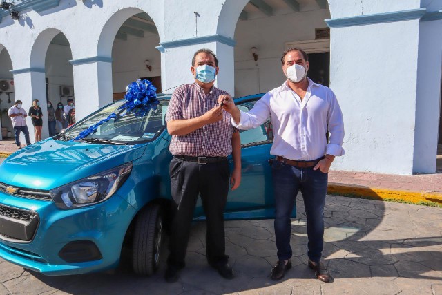 Progreso, Yucatán a 06 de enero de 2021. “Este año, los premios de la rifa del impuesto predial 2020 se van a las comisarías, pues uno de los tres ganadores habita en Flamboyanes y los otros en los puertos de Chicxulub y de Chuburná. Agradecemos la confianza y la espera de los más de 18 mil contribuyentes que cumplieron con este impuesto en enero del año pasado. Este 2021 continuaremos con nuestros proyectos y programas para sacar adelante al municipio”, expresó el alcalde Julián Zacarías Curi tras entregar esta mañana dichos premios en los bajos del Palacio Municipal.