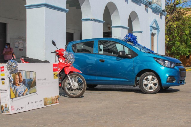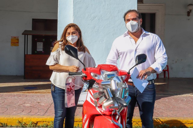 Y a la señora Lucia del Carmen Flores Puga, del puerto de Chicxulub su motocicleta, esto como segundo lugar, así como al señor Carlos Enrique Espadas Villajuana, de Chuburná puerto, su auto beat compacto correspondiente al primer lugar.