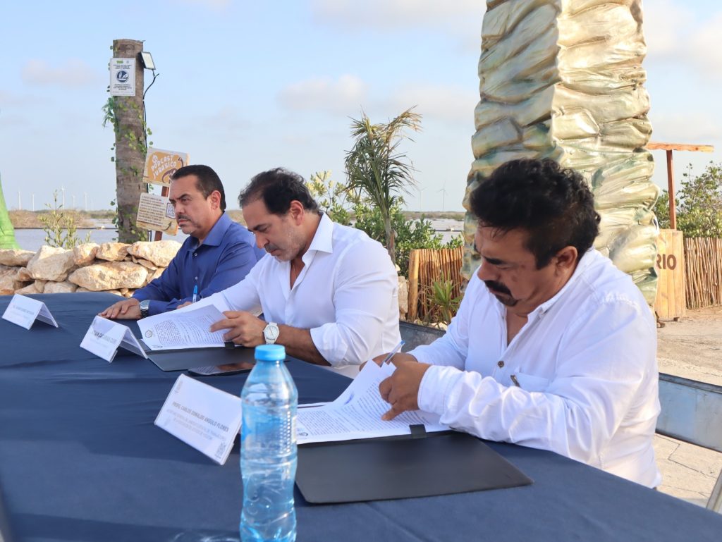 Progreso, Yucatán a 6 de mayo de 2023. Con el propósito de que cada vez más personas puedan visitar Sendero Jurásico y disfrutar sus grandes atractivos, el alcalde de Progreso Julián Zacarías Curi firmó un convenio de colaboración con el Sindicato Estatal de los Trabajadores de la Educación de Yucatán (SETEY).