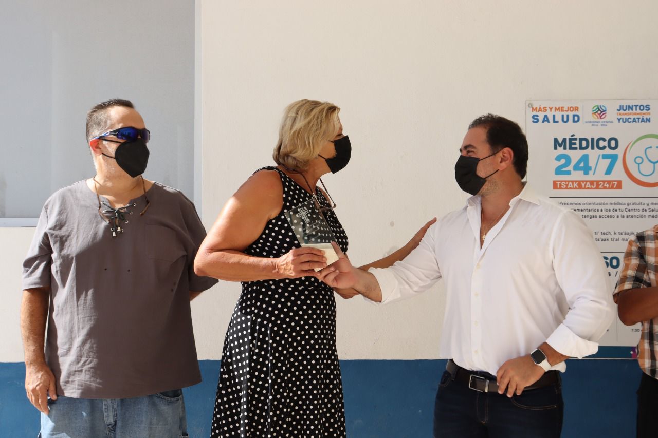 Progreso, Yucatán a 12 de agosto de 2021.- Con el objetivo de agradecer la gran labor altruista que realiza la comunidad extranjera en la comisaría de Chelem Puerto, el alcalde Julián Zacarías Curi entregó hoy el reconocimiento “Ma’ a wa’alik yaakunaj e’sej” (no digas amor, demuéstralo) a Kelly Conway y Lorenzo Cobb, representantes de diversas asociaciones que por 8 años han contribuido al bienestar de la comunidad.