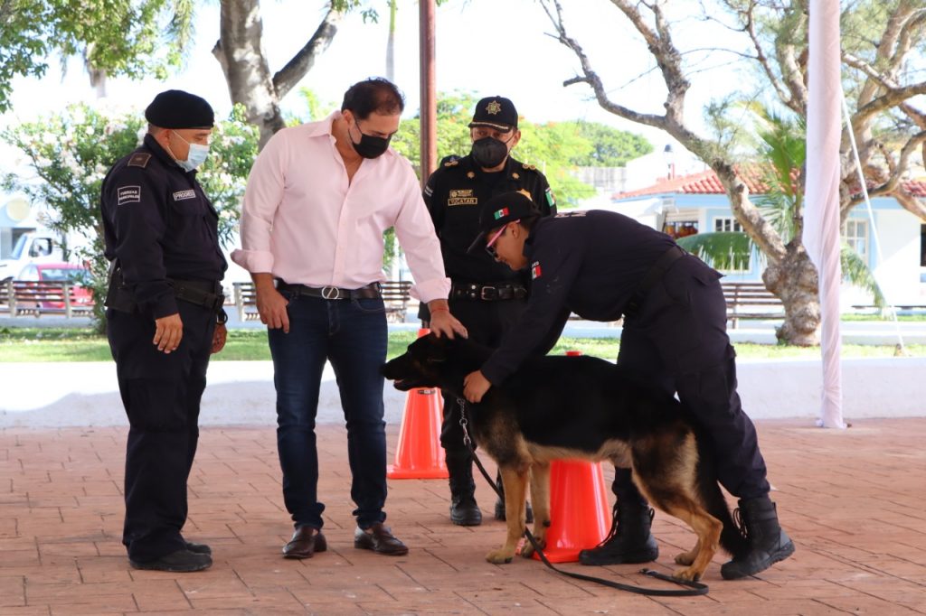 PROGRESO, 3 de septiembre. – El alcalde Julián Zacarías Curi realizo la entrega de equipamiento para los perros policía (K9) pertenecientes a la Dirección de Seguridad Pública y Tránsito.