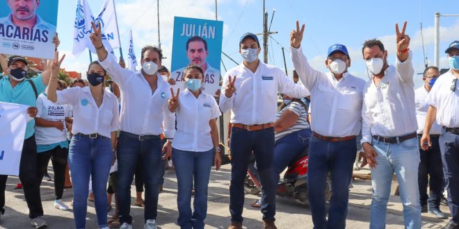 Progreso, Yucatán a 09 de abril de 2021. A temprana hora de este viernes, Julián Zacarías Curi, candidato del Partido Acción Nacional a la presidencia municipal de Progreso inició su campaña política en la zona poniente de dicho puerto, en específico en el refugio pesquero conocido como “La caleta”; sitio donde se desarrolla una de las principales actividades de la economía de la península yucateca: la pesca.