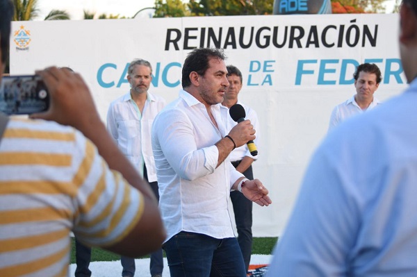 Progreso, Yucatán a 06 de junio 2019.- “Hoy se logra algo histórico, una rehabilitación nunca antes vista en más de 50 años, hay que aplaudirlo, es un trabajo muy fuerte después de un tiempo en el que Progreso carecía de atención, hoy un gran equipo de trabajo pone su mayor esfuerzo en hacer las cosas bien”, dijo el Alcalde Julián Zacarías Curi, en la reinauguración de las instalaciones del Campo deportivo Benito Juárez de “La Federal”.