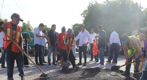 El bacheo comenzó en la calle 114 por 21 de la comisaría de Chelem y reunió a autoridades y vecinos que aplaudieron las atenciones del ayuntamiento.