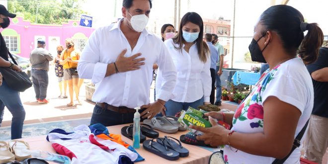 Progreso, Yucatán a 17 de abril de 2021. “Mi compromiso con ustedes es ser un facilitador que les ayude a impulsar la actividad económica que están realizando, no sólo con una oficina de enlace y con gente preparada, sino también con una infraestructura optima que les permitan desarrollarse en espacios públicos”, indicó Julián Zacarías Curi, candidato del Partido Acción Nacional a la presidencia municipal de Progreso, durante su visita a la “Expo Progreso” efectuada hoy en la cancha deportiva del Smapap.