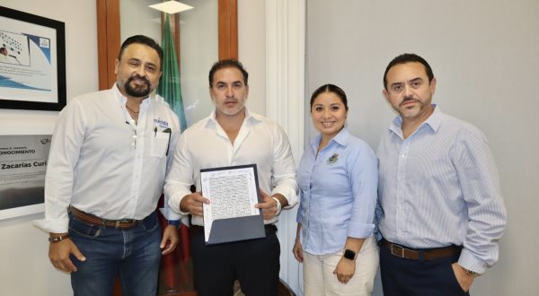 PROGRESO, Yuc., 24 de marzo de 2023. Está mañana, el alcalde de progreso Julián Zacarías Curi recibió a Juan Gabriel Chan Dib, Jefe de Proyectos Especiales y Atención a la Zona Metropolitana del Ayuntamiento de Mérida con el fin de ratificar de manera oficial la participación de Progreso en la firma del convenio del plan integral del Desarrollo Metropolitano de Mérida y de los municipios.