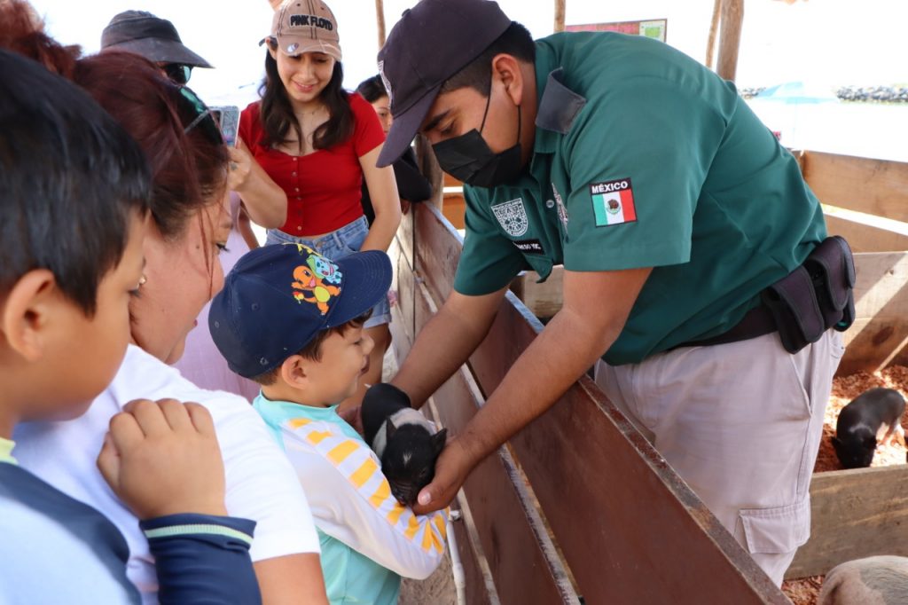 PROGRESO, 10 de agosto de 2022. – El H. Ayuntamiento que preside el alcalde Julián Zacarías Curi, a través de la Unidad de la Policía Ecológica, informa que a un año de la apertura de la “Pig Beach”, el mantenimiento constante de las instalaciones, junto a los cuidados que reciben los cerditos que la habitan, ha permitido que no solo los animales crezcan en condiciones favorables, sino que se ha transformado en un espacio de interés y paseo para miles de familias.