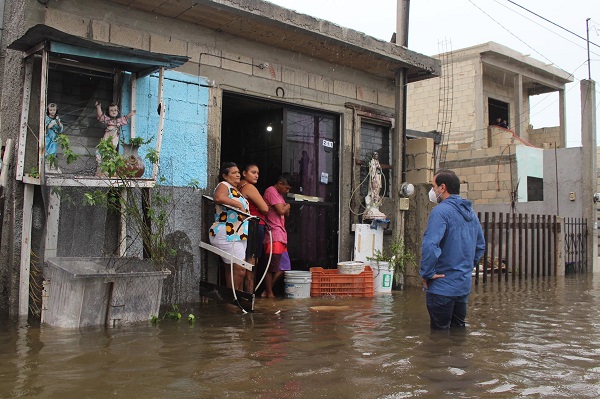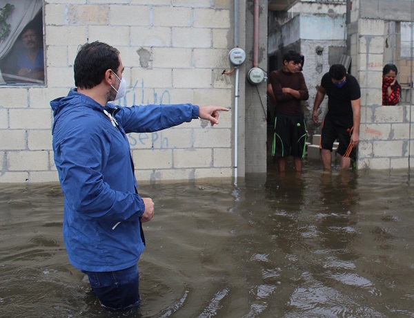 Progreso, Yucatán a 5 de junio de 2020. La colonia Ciénega 2000 de la cabecera municipal es una de las más afectadas por las intensas lluvias que ha generado la depresión tropical “Cristóbal”, razón por la cual, el alcalde Julián Zacarías Curi acudió hoy desde temprana hora a dicha zona para supervisar las atenciones a las familias afectadas de igual modo para invitarlas a acudir a uno de los refugios que habilitó el Ayuntamiento de Progreso.