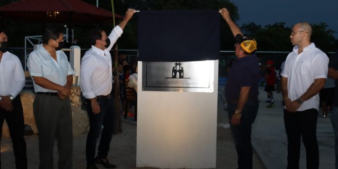 Después de la develación de la placa, el alcalde dio un recorrido por el parque acompañado de los regidores Karim Dib López y Mario Canto Briceño; así como también de Ricardo Jerez, titular de la Unidad de Comisarías, Israel de Jesús Cauich Canché, comisario de la localidad y Felipe Uc Puc, del comisariado ejidal.