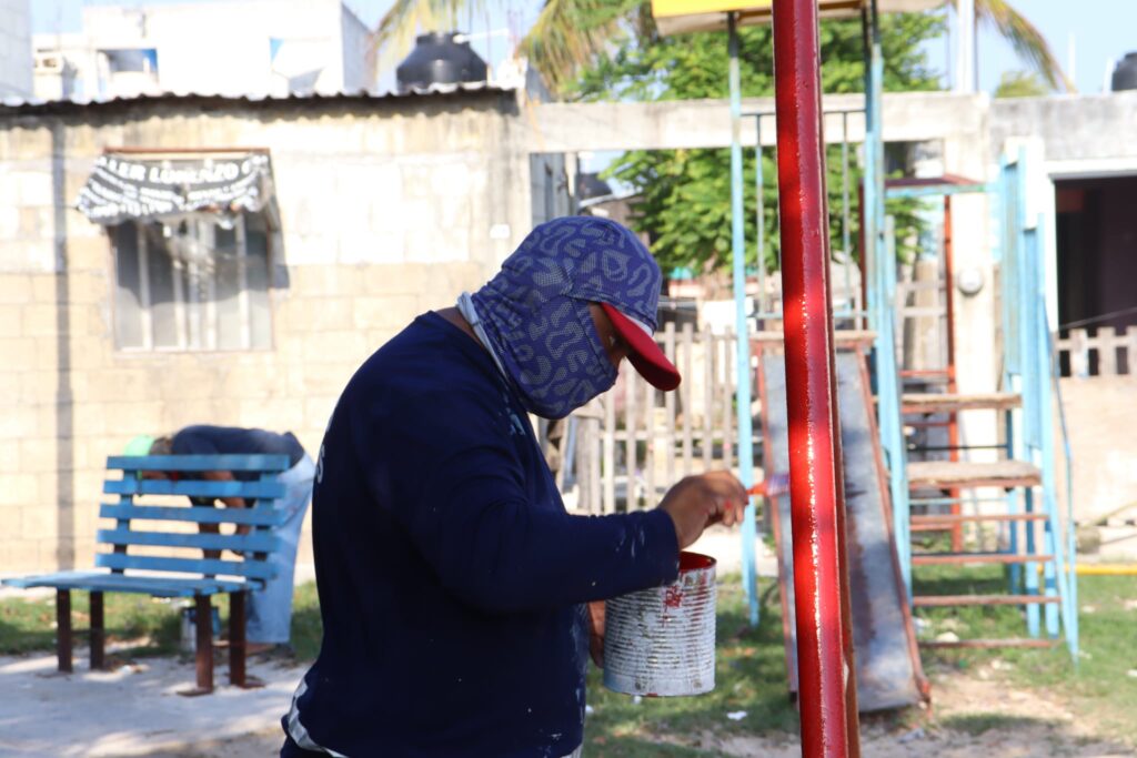 Entre las mejoras que se realizaron, fue la aplicación de pintura en juegos, muros del área de la zona de fútbol, bancas, guarniciones, así como en el quiosco, también se procedió a la poda de todo el interior del parque y sus alrededores, recorte de maleza y arbustos en la vía pública y parte del periférico.