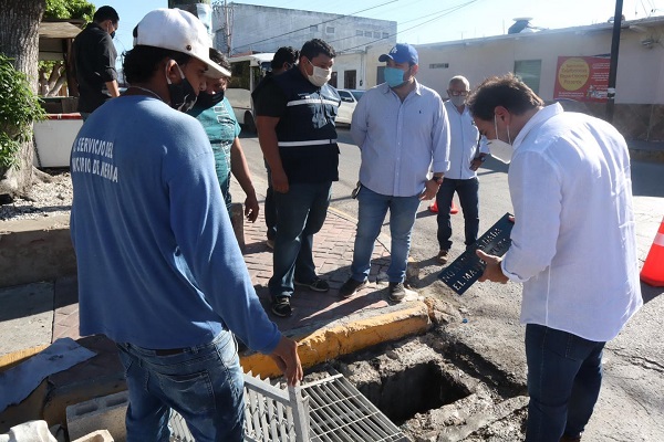 Durante la supervisión, estuvo presente el titular de dicha dependencia, Luis Castro Naal, quien le explicó al alcalde los trabajos que se han hecho en cada rejilla, que van desde la instalación de la pieza así como el desazolve e incluso la construcción del pozo, esto dependiendo del entorno, se hacen con una profundidad de 70 centímetros o un metro.