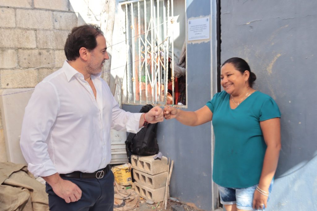 PROGRESO, 31 de octubre. – Con el objetivo de supervisar el avance de los trabajos pertenecientes al programa “Techos Firmes”, el alcalde Julián Zacarías Curi, realizó un recorrido por los hogares del fraccionamiento Campestre Flamboyanes, localidad en la que se desarrollan una parte de estas obras.
