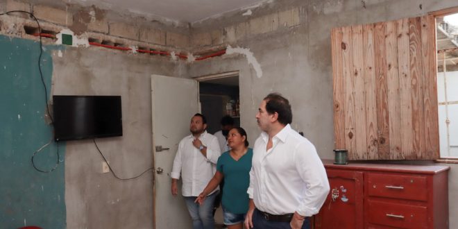 PROGRESO, 31 de octubre. – Con el objetivo de supervisar el avance de los trabajos pertenecientes al programa “Techos Firmes”, el alcalde Julián Zacarías Curi, realizó un recorrido por los hogares del fraccionamiento Campestre Flamboyanes, localidad en la que se desarrollan una parte de estas obras.